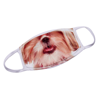 Shizu Dog place earl-loops around both ears. Adjust the mask to fit securely under the chin and over the bridge of the nose. Mask should cover the nose mouth and chin.
